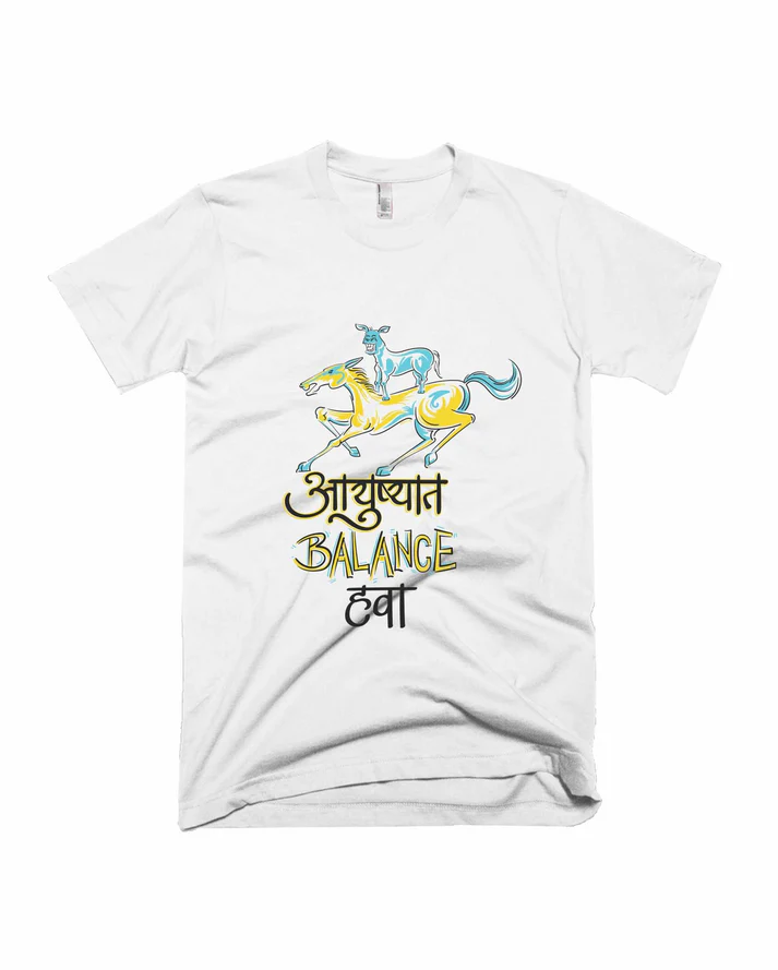 “Ayushyāt Balance Hawa” T-Shirt – White Edition
