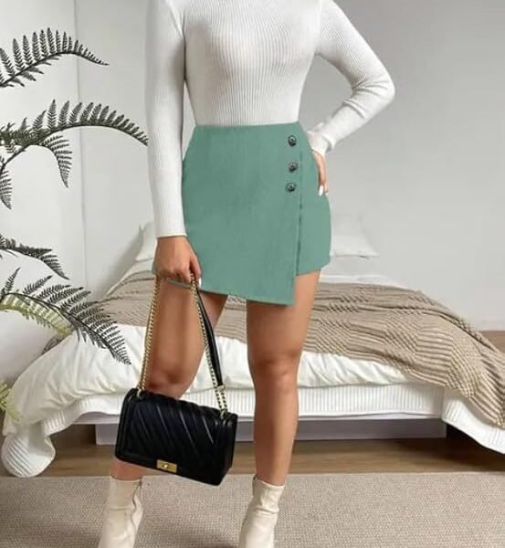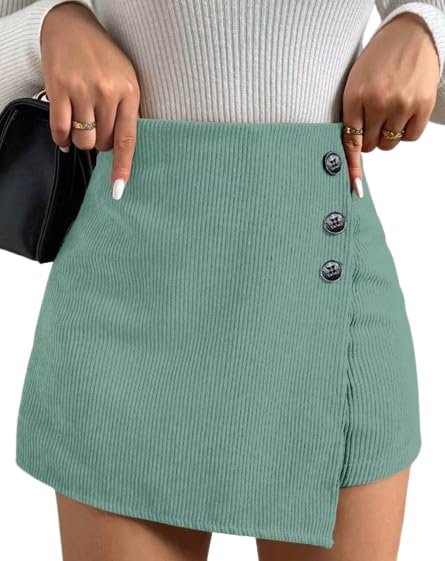 PINKHUB Women’s and Girl’s Ribbed Corduroy Mini Skirt with Decorative Buttons, High Waist, A-Line Mini Skirt