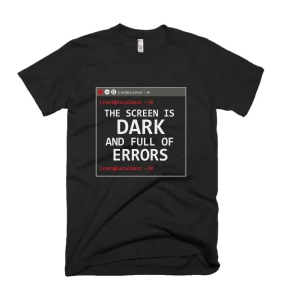 Whether you’re battling bugs or just vibing with dark mode, this shirt gets you. Console-chic, with a twist of despair.