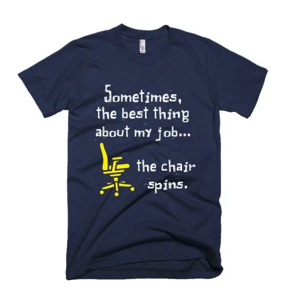 “Sometimes, the best thing about my job... the chair spins.”Wear it to work. Or to quit work. Your call.