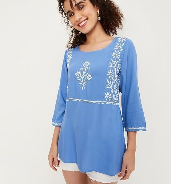 - Breathable Fabric: Made from soft & smooth rayon fabric, the chikan work short kurti keeps you cool and comfortable in the summer months.