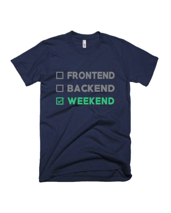 Be the first to review “Frontend, Backend, Weekend – Navy Blue T-Shirt” Cancel reply