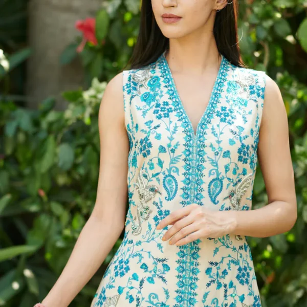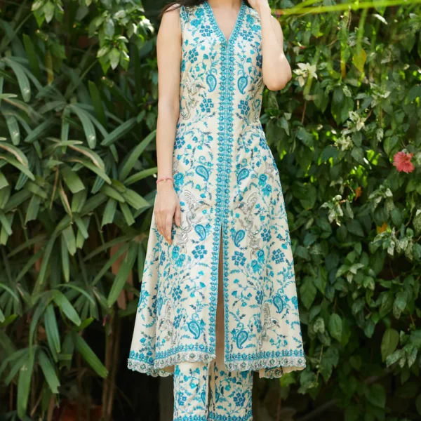 Featuring Ivory Kurta Set In Dupion Silk Base With Blue Colored Floral Aari Embroidery Which Is Highlighted With Sequins, Dabka