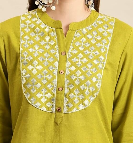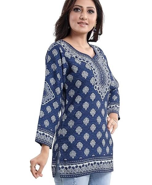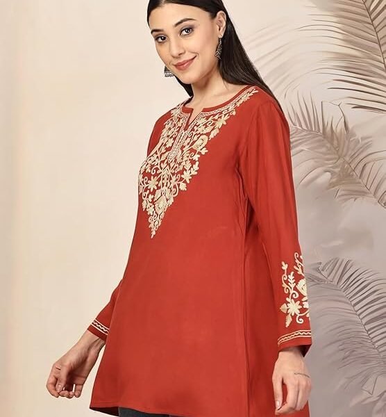 QAZMI Women’s Jasmine Kashmiri A-Line Full Sleeves Rayon Cotton Short Kurti