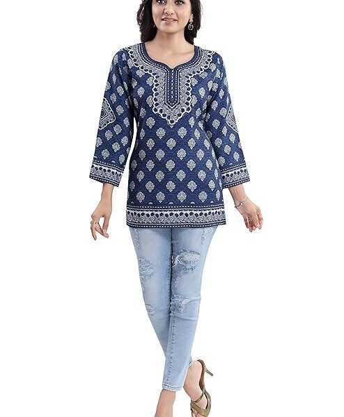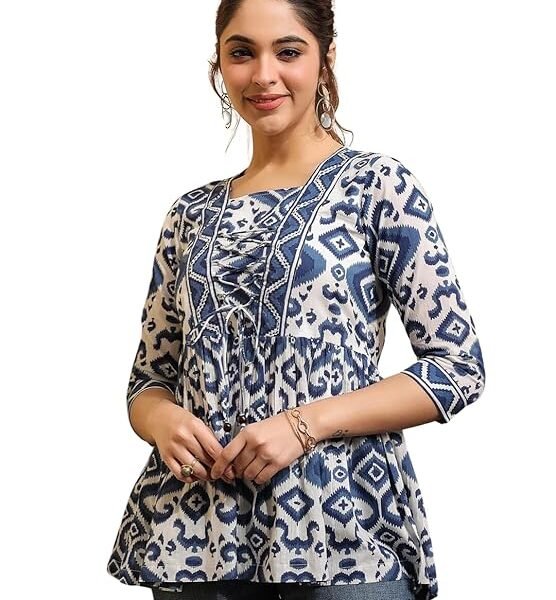 ATTiREZiLLA Women’s Hip Length Short Printed Kurti, 3/4 Sleeves Cotton
