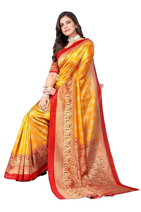 Yashika Women’s Fancy Banarasi Kanjivaram Art Silk Saree with Blouse Pieces||Yellow Coloured Kanjivaram Saree|| AZ-YS-OG-YUKTI YELLOW