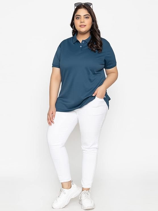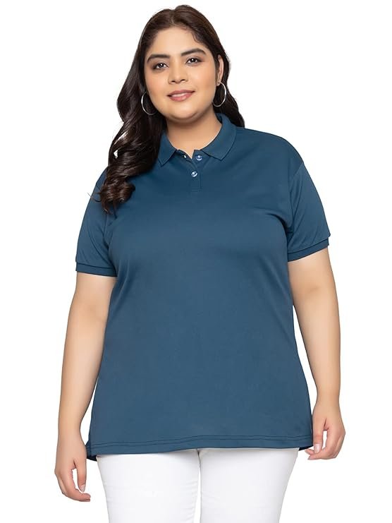 Cantabil Regular Fit Printed Polo Neck Half Sleeve Casual T-Shirt for Women | Half Sleeves Polo Neck T-Shirts for Women | Women Polo Neck Printed T-Shirt (P_LTSH00005)