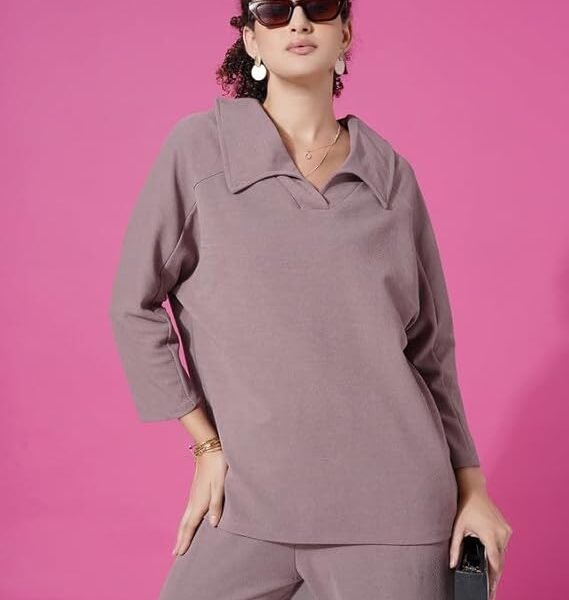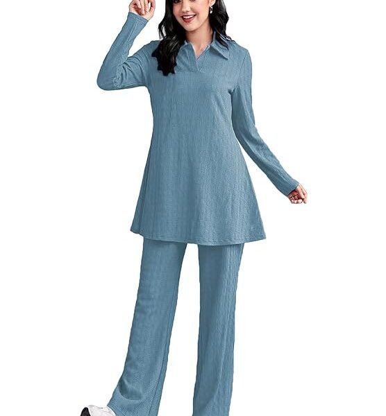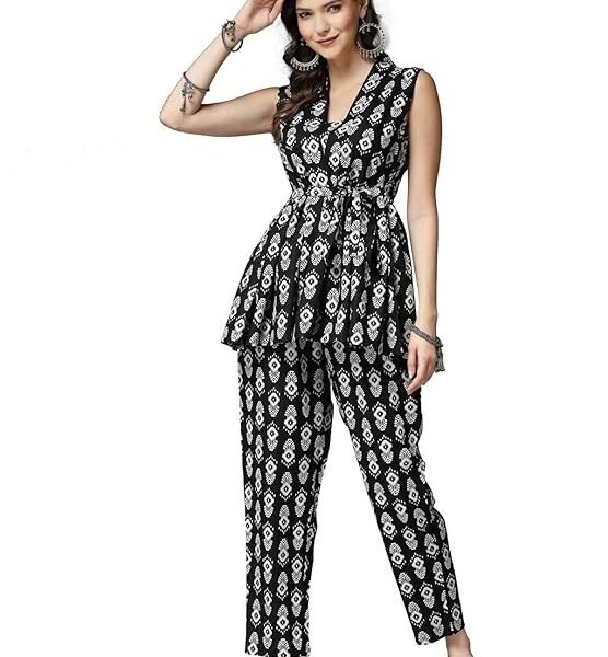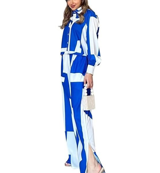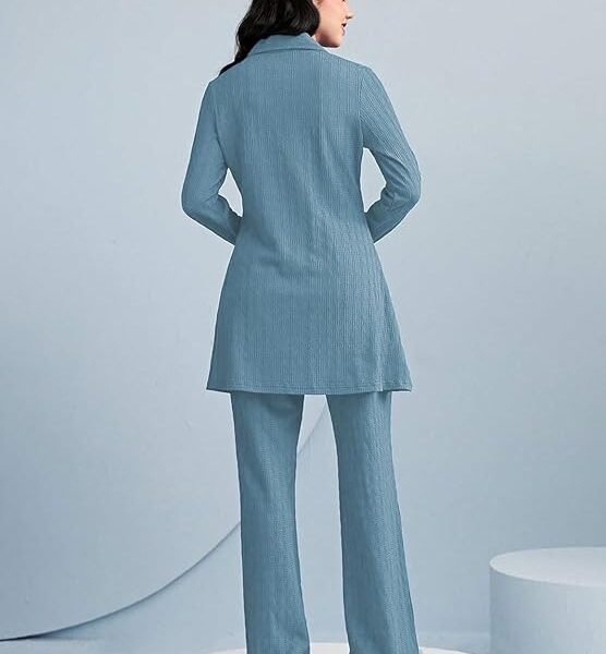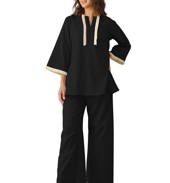 - Coordinating palazzo pants with elastic waistband for a comfortable fit